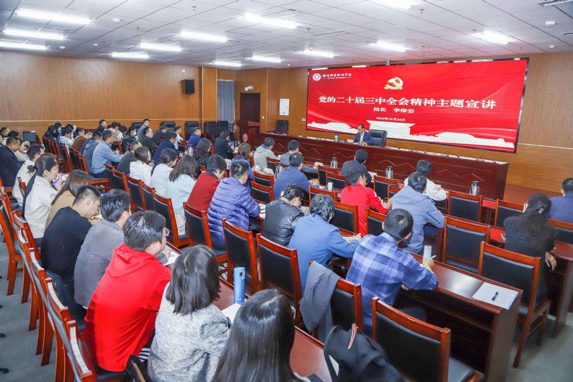 10月24日,我校召开党的二十届三中全会精神宣讲会。党委副书记、校长李保安作主题宣讲。